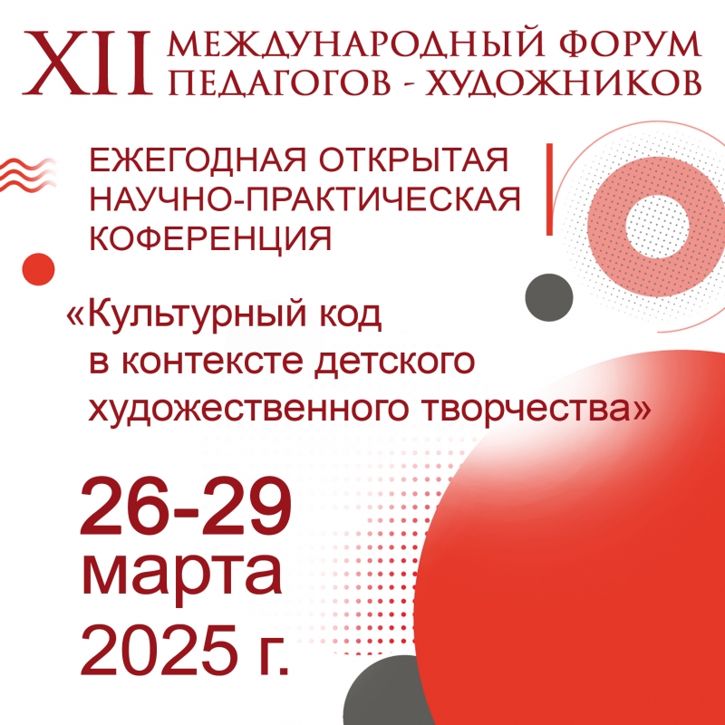 04 марта 2025 - Департамент образования и науки г. Москвы Московский городской педагогический университет Институт непрерывного образования Центр непрерывного художественного образования Международный союз педагогов-художников XII Международный форум педагогов-художников Ежегодная открытая конференция «Культурный код в контексте детского художественного творчества» Москва, 26-29 марта 2025 г. ПОЛОЖЕНИЕ ...